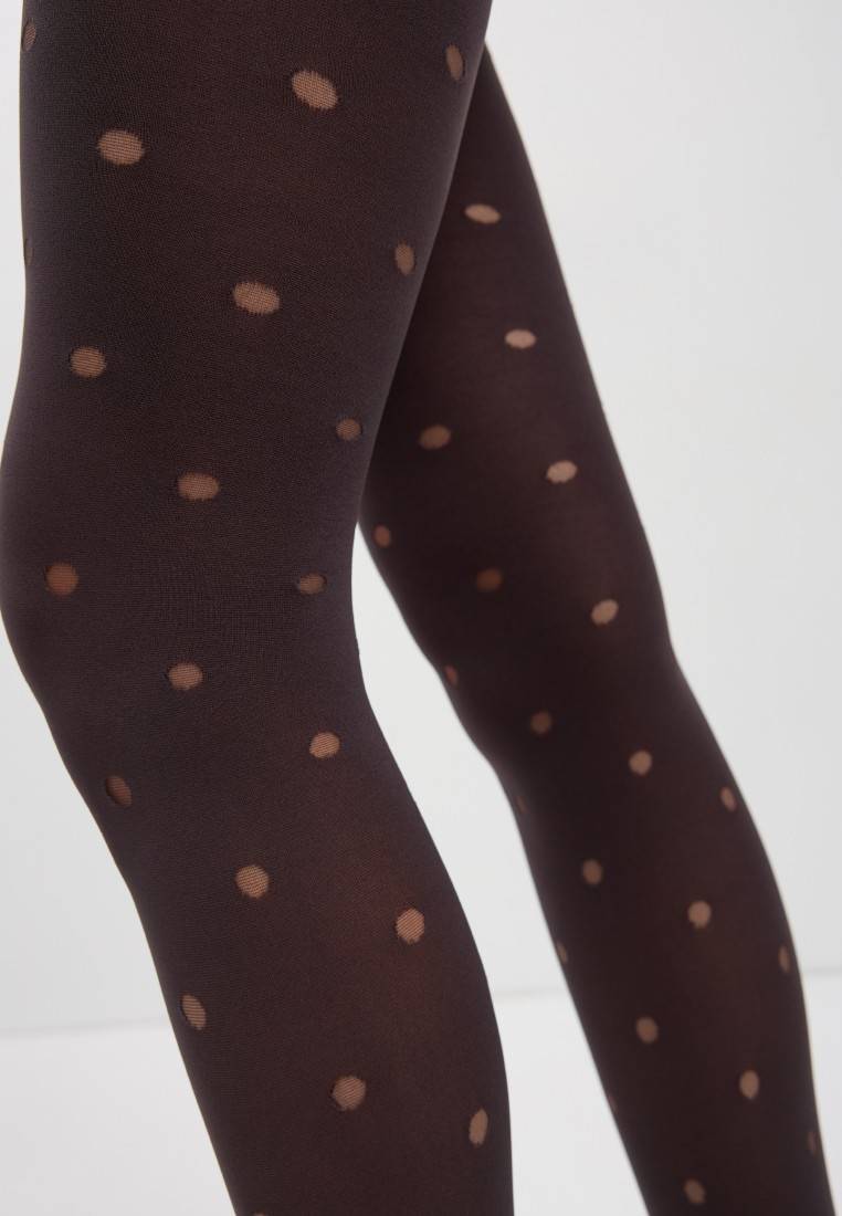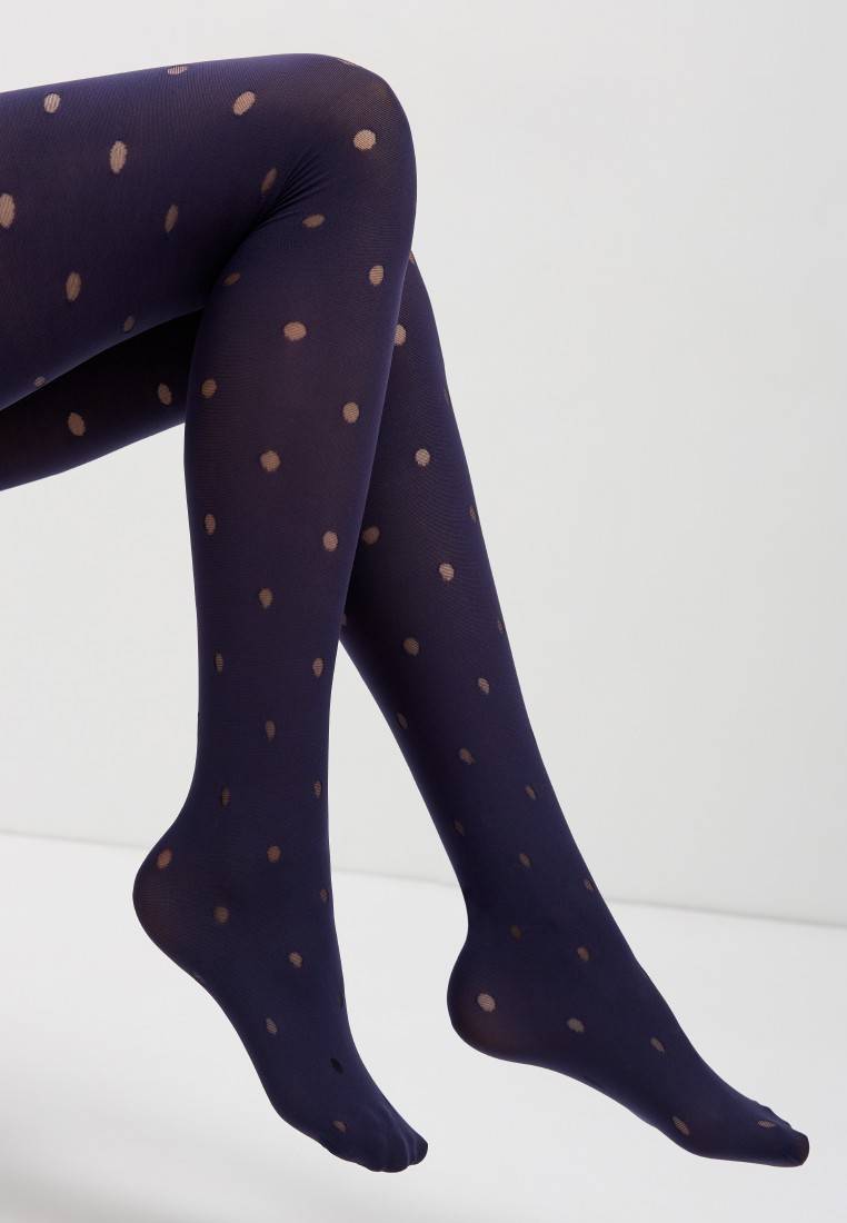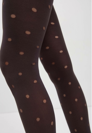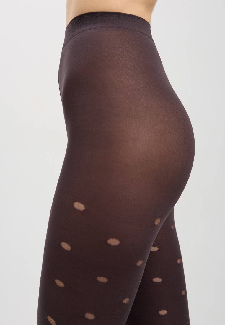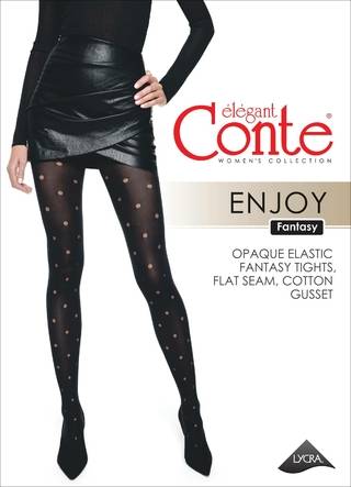 Дизайнеры Conte предлагают взглянуть на любимый рисунок по-новому с помощью плотных фантазийных колготок ENJOY в прозрачный горошек. · 60 den · удобный пояс · пробивочный рисунок «горошек» · плоский шов · хлопковая ластовица.